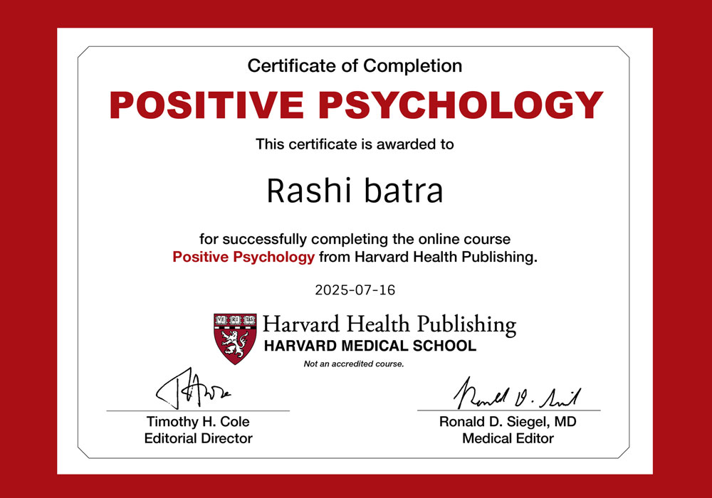A Certificate of Completion in Positive Psychology